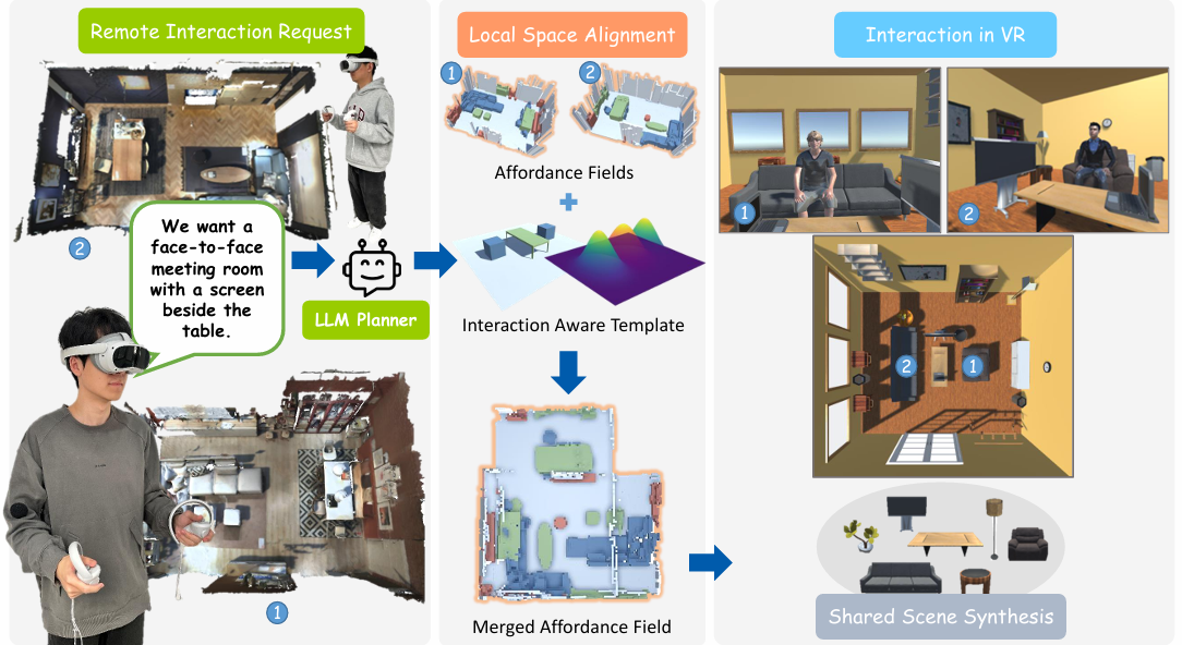 Interaction-aware Shared Scene Synthesis for VR Telepresence Zhangyao Tan, Qixiang Ma, Runze Fan, Sio Kei Im, Lili Wang* IEEE Transactions on Visualization and Computer Graphics (IEEE TVCG) Also presented at IEEE Conference Virtual Reality and 3D User Interfaces (IEEE VR) PDFVideo